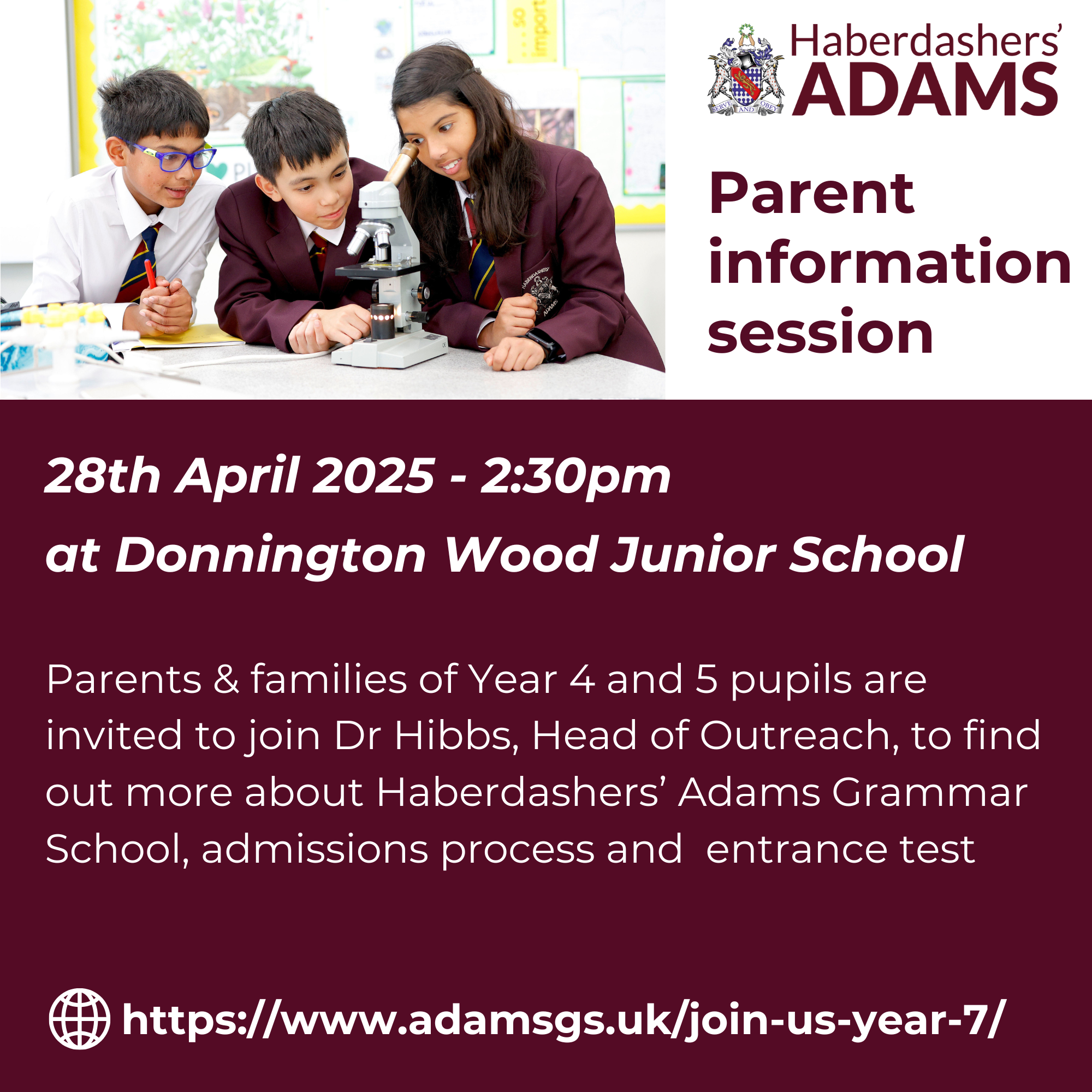 Year 4 and 5 Haberdasher Entranace exam and advice open afternoon. April 11, 2025 | donningtonwood If You are interested in how to apply and take the Entrance exam at Haberdasher, please come along to the event attached . Related