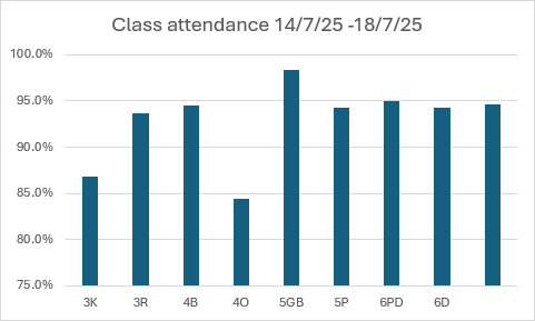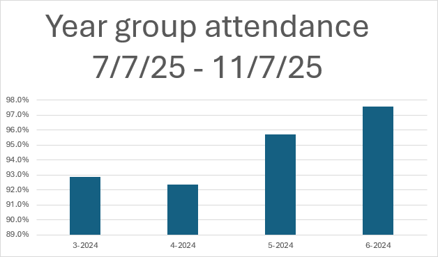 Attendance week 7/7/25 – 11/7/25. Weekly attendance 94.70%